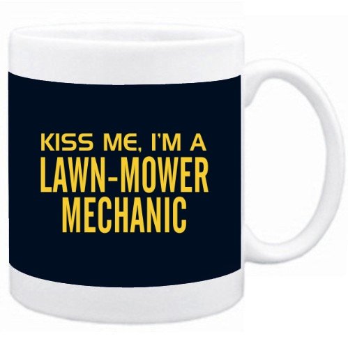 KISS ME, I AM a Lawn-Mower Mechanic Occupations Mug (Navy Blue, Ceramic, 11oz.) Review